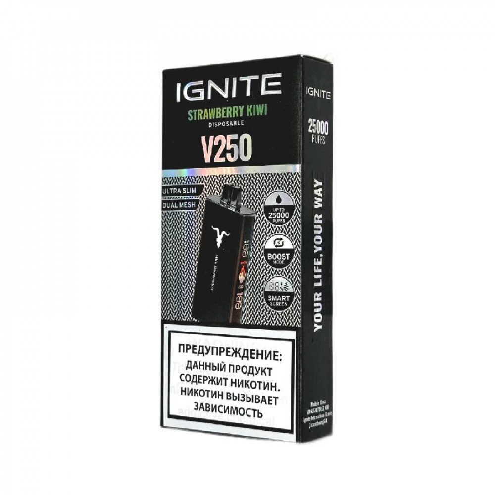 Электронная сигарета Ignite V250 Black 25000 - Strawberry Kiwi (Клубника киви) - купить в Новосибирске