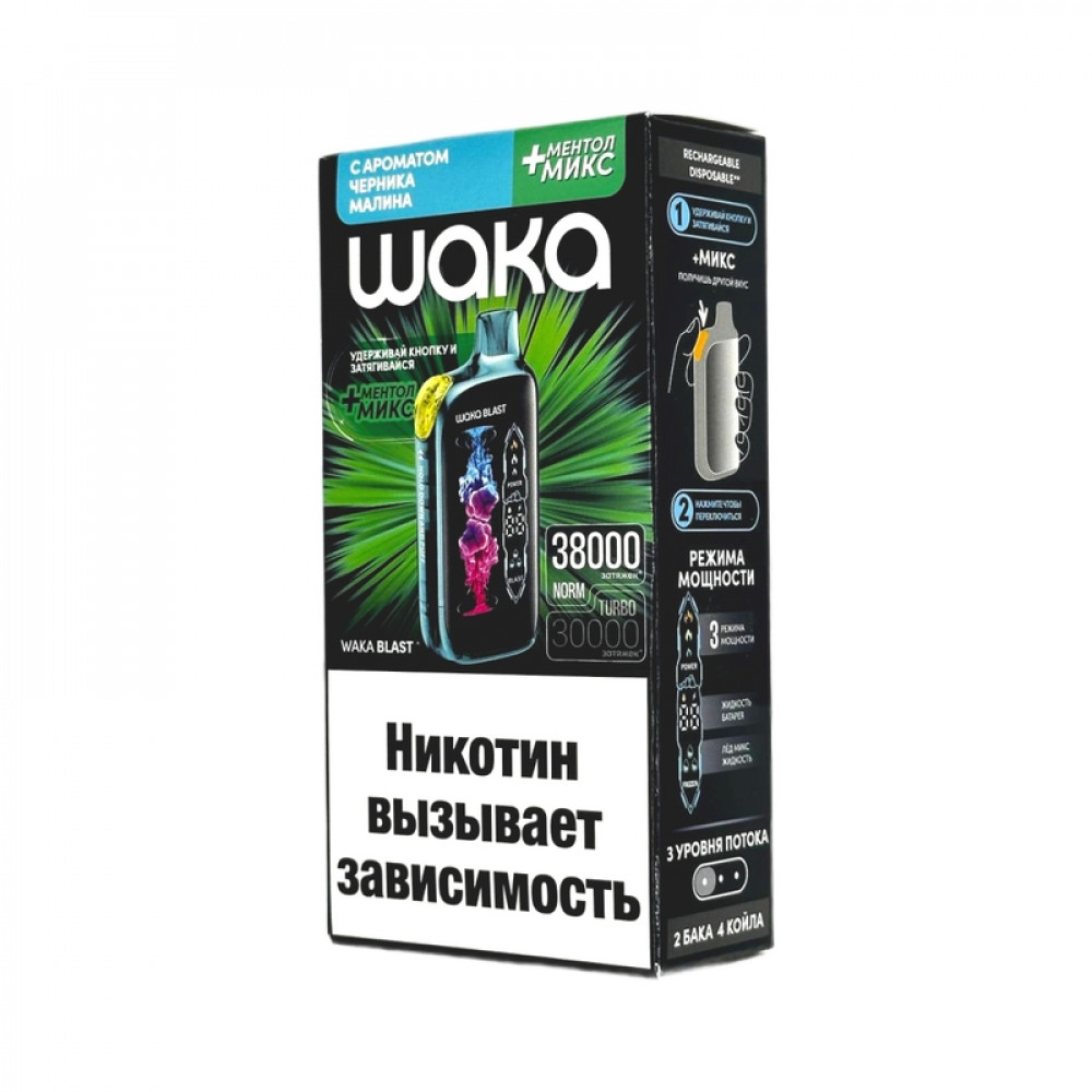 WAKA BLAST 38000 Hard - Черника малина + ментол микс - купить в Новосибирске